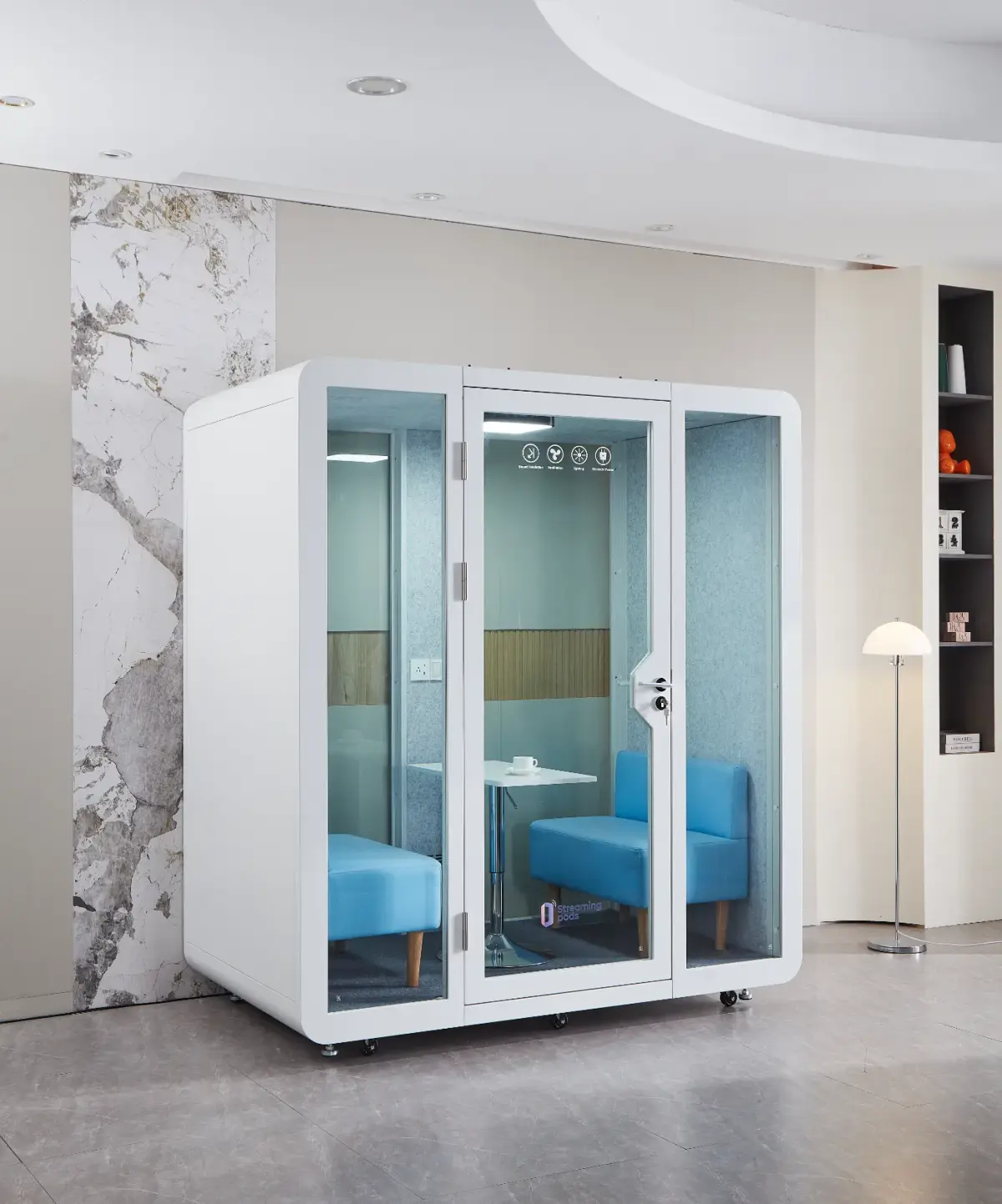 Soundproofing is at the core of our meeting booth design. We use advanced acoustic materials to minimize noise intrusion, ensuring that your meetings remain confidential and free from external disturbances. This focus on acoustic excellence makes our booths suitable for sensitive discussions and presentations.