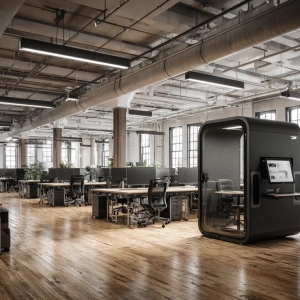 Our core service offering includes meeting booths that comfortably accommodate 2 to 6 people. These pods are ideal for small team meetings, client presentations, or private discussions. Each booth is equipped with state-of-the-art acoustic materials to ensure privacy and minimize external noise, allowing for clear and uninterrupted communication.